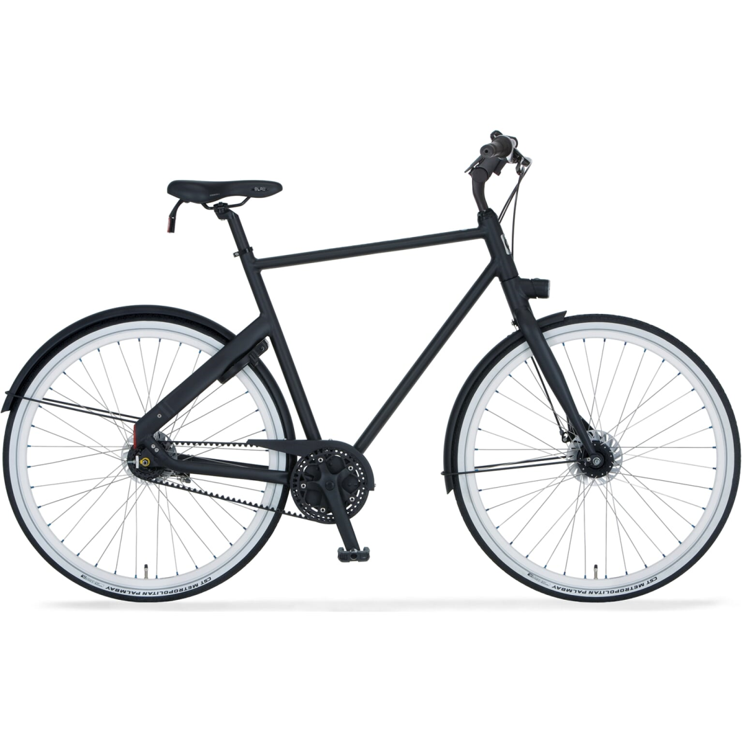 Hoewel de Cortina Blau Belt Heren geen geïntegreerde vering heeft in de voorvork of het zadel, compenseert de wielmaat van 28 inch en het lichte frame dat ruimschoots. Hierdoor ervaart u een stabiele en comfortabele rijhouding die uitermate geschikt is voor stadsritten en langere fietstochten. De naafdynamo-verlichting zorgt niet alleen voor veiligheid, maar ook voor extra gemak omdat u nooit meer met lege batterijen hoeft te kampen. De matzwarte uitvoering geeft de fiets een tijdloze en stijlvolle uitstraling die perfect past bij elke outfit en elk moment van de dag.